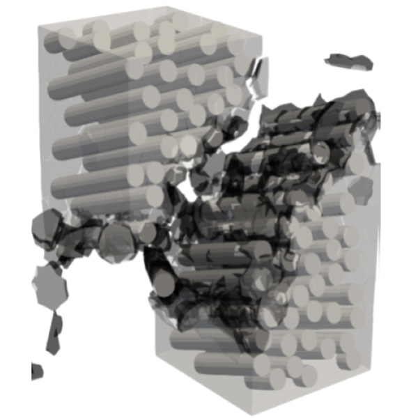 The power of DM4C is vividly illustrated through its application in analyzing the failure of a lamina composite thermoset. As depicted in the accompanying figures, DM4C precisely models the intricate failure mechanisms of a material characterized by a 5.2-micron fiber diameter, specifically under compressive loading conditions. This detailed visualization and analysis are crucial for understanding the nuanced ways in which composite materials fail at the micro-level.